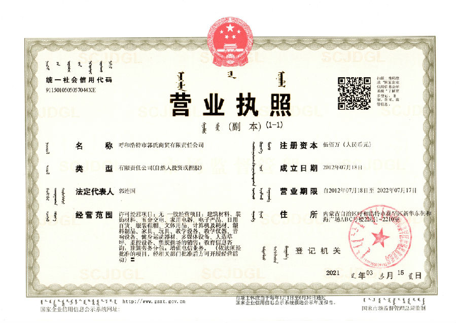 您好,歡迎訪問 呼和浩特市郭氏商貿(mào)有限責任公司